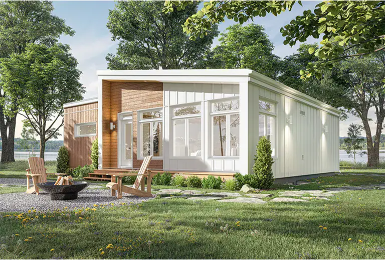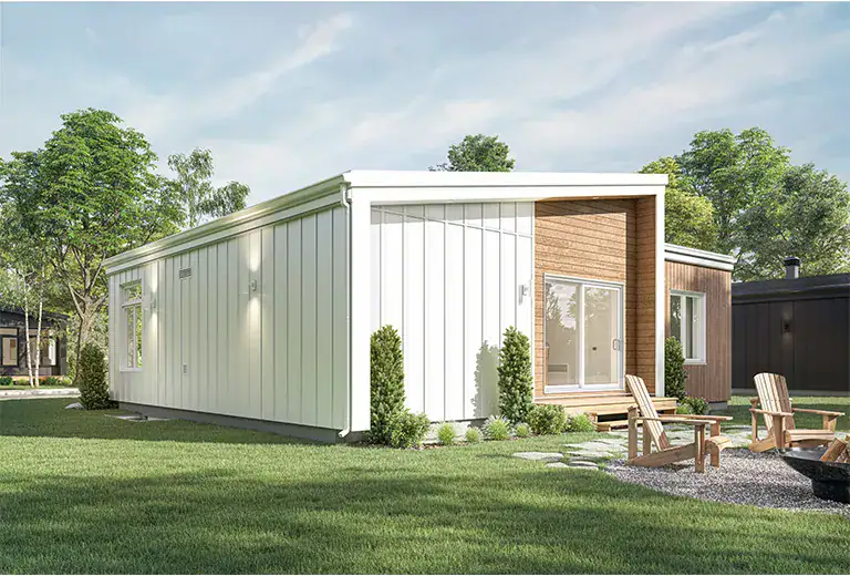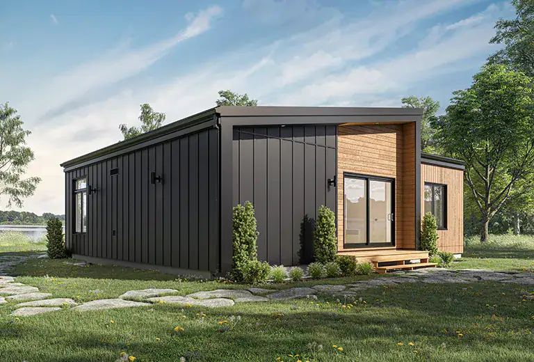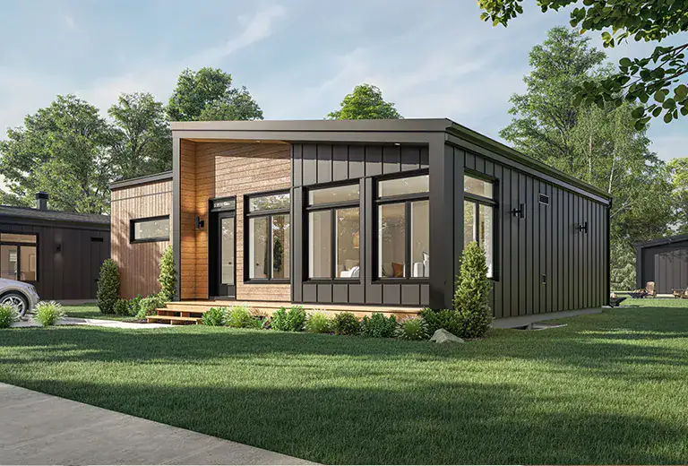 With its clean volumes and façade highlighted by an angled, graphic roofline, Nayô presents a uniquely distinctive style. Its architectural projection and interplay of materials give it a look inspired by Scandinavian minimalism. Available in black or white, it integrates harmoniously into its surroundings while confidently expressing its personality.