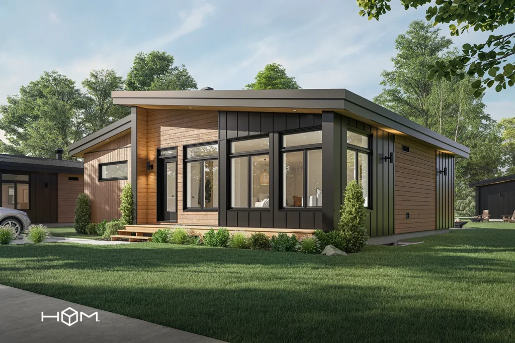 With its inverted‑slope roofs inspired by Mid‑Century modernism, Sayô showcases a bold geometric profile. The rhythm of its volumes and the contrast of its materials and colors give it a contemporary vacation‑home character. Available in black or white, Sayô impresses with its generous brightness, open views, and its seamless potential to blend into the surrounding landscape.