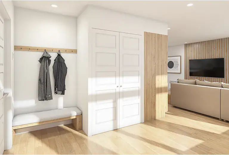 • A functional entryway with wardrobe and bench nook